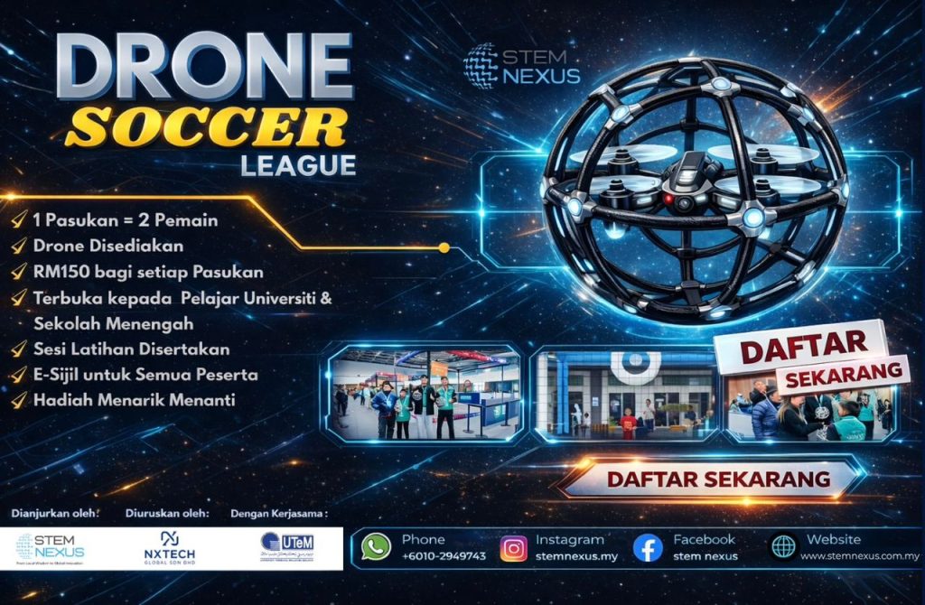 The STEM NEXUS Drone Piloting Battle & Drone Soccer League is Malaysia’s premier STEM-based drone challenge designed for students aged 10–17 years old up until university level. It combines fun, education, and competition while giving students a platform to showcase their skills at both national and international levels.